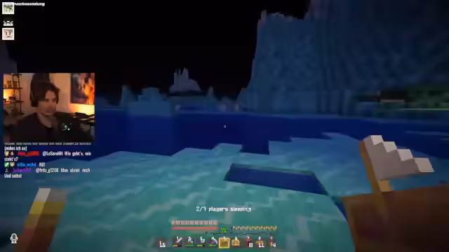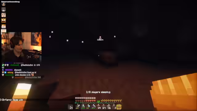 02:16:53Willi meldet sich im Server-Chat und fragt nach dem Streamer, der ihn zuvor nicht bemerkt hatte. Es entspinnt sich ein humorvoller Dialog über Willis Befinden und seine Baufortschritte. Willi berichtet, dass er an einer Nether-Autobahn arbeitet, die seinen südlichsten und nördlichsten Punkt miteinander verbinden soll. Diese lange Eisbahn soll eine schnelle Fortbewegung im Nether ermöglichen und wird als „Chinesische Mauer“ bezeichnet. Der Streamer zeigt sich beeindruckt von Willis Engagement und der Größenordnung des Projekts.