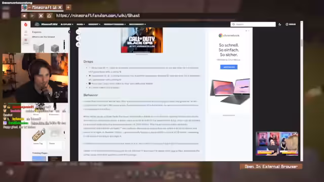 02:01:19Es gab früher auf dem Minecraft-Server eine legendäre Schnitzeljagd mit verschiedenen Quests, was der Streamer in Erinnerung ruft. Nach einer kurzen Pause, in der er etwas trinken möchte, kündigt er an, sich um die Fragen für das Quiz-Gasti zu kümmern. Ziel ist es, die Fragen noch diese Woche zu sichten und das Quiz über die Bühne zu bringen. Im Hintergrund wird bereits an einem schönen Modell gearbeitet. Zudem müssen Ghasts und Nether-Tränen gesammelt werden. Dies erfordert eine kurze Unterbrechung des Streams, bevor es weitergeht.