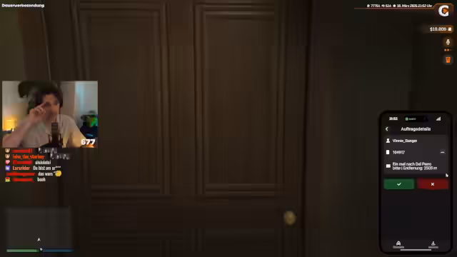 02:11:52Der Streamer startet eine Challenge namens 'Taxifahrt maximal rauszögern', bei der er Fahrgäste absichtlich auf Umwegen umleiten soll. Jedoch sind alle ankommenden Fahrgäste sehr geduldig und spielen nicht mit. Ein Anrufer namens Thiag Willsen wirkt zudem so verdächtig, dass dieser selbst ein anderes Taxi bestellt. Der Streamer gibt auf und stellt fest, dass die Challenge an der Community-Interaktion gescheitert ist.