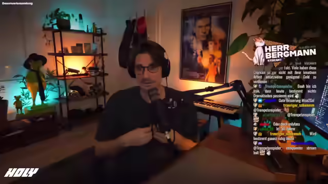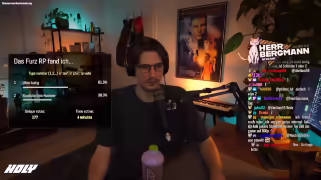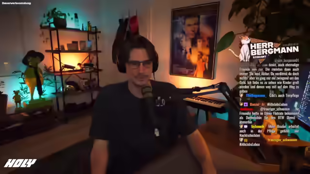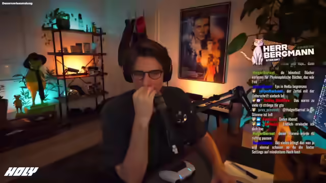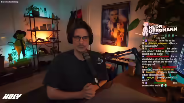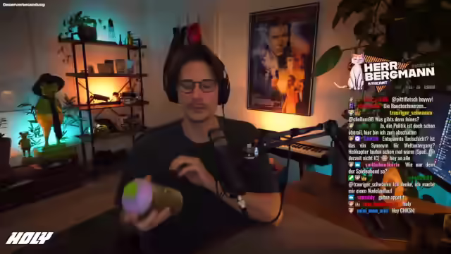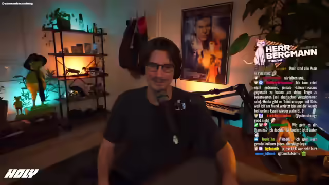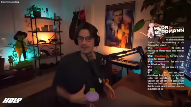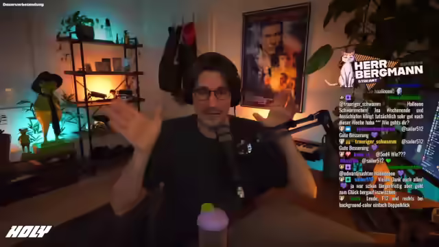 00:19:54Nach der Pause berichtet der Streamer vom Spieleabend mit Freunden, insbesondere von Max, der lange nicht mehr dabei war. Er betont, dass Max nicht mehr im GTA-Roleplay vorbeischauen wird. Anschließend kommt er auf Holy zu sprechen und wirbt für die Produkte, insbesondere Matcha mit Lemon und Starfruit Hibiscus. Er erwähnt den Rabattcode "Bergy", mit dem man 10% sparen kann und deutet spannende Neuigkeiten bei Holy an. Es wird kurz über den grünen Deckel der Holy-Flasche gesprochen, der von der Patrick-Flasche stammt. Der Streamer spricht über seine PC-Probleme und die Hoffnung, dass die angepassten Grafikeinstellungen in GTA helfen werden. Er äußert sich zu Merch-Ideen, wie einem Hodi-Becher mit schwarzer Tonne und einem Pablo Ugly Sweater, aber betont, dass Merch nicht seine oberste Priorität hat. Er plant, die Trouble Cat Mütze on demand anzubieten und will sich diesbezüglich informieren.