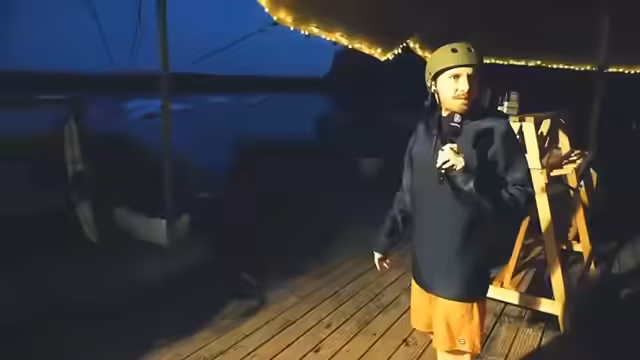 02:38:17Nach Abschluss der Wakeboard-Aktionen bittet der Streamer alle Teilnehmer, sich zum großen Schlussfoto zusammenzufinden. Trotz Dunkelheit und kühlen Temperaturen organisiert die Wasserskianlage Bleibtreu See auf Nachfrage eine romantische Beleuchtung. Der Streamer bedankt sich bei allen Teilnehmern, den Organisatoren, den Hot Rod Brothers und dem gesamten Team für einen unvergesslichen Tag und erwähnt die besondere Atmosphäre.