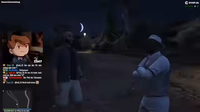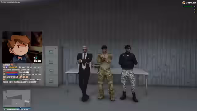 00:00:55Der Stream beginnt mit einer Verzögerung, da die Gruppe verspätet ist. Streamer Bergmann entschuldigt sich für das Fehlen der Facecam und stellt seine Charaktere vor. Die wichtigste Ankündigung betrifft den Grundwehrdienst (GWD): Dieser wird vorerst abgebrochen. Die Gründe dafür sind, dass das Militär-Roleplay zu anstrengend, trocken und stressig für einen Livestream war. Es bot kaum Raum für lockeres Quatschen oder spontane humorvolle Einlagen, was für den Unterhaltungsaspekt des Streams als ungünstig empfunden wurde.
