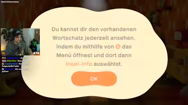 03:44:39Der Streamer arbeitet weiter an den Charakterfragen und Phrasen der Bewohner, um deren Persönlichkeit zu schärfen. Die Oma erhält neue Eigenschaften und Phrasen wie 'Uma backt Kekse', die ihr Verhalten im Spiel prägen. Gleichzeitig werden neue Charaktere wie Chris geplant, der als 'Wutbürger' die Insel bereichern soll.