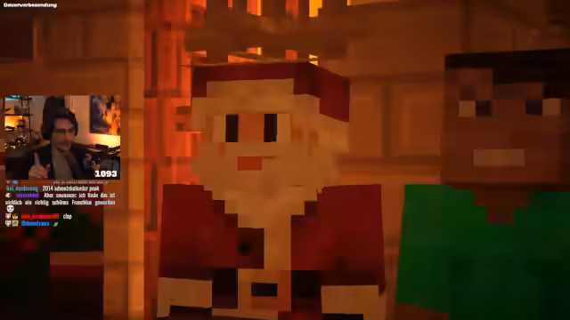 01:23:45Der Streamer begrüßt die Zuschauer zu einer Rewatch des Adventskalenders von 2013 und erinnert an den Beginn seiner cineastischen Minecraft-Reise. Die Entstehungsgeschichte wird geschildert: spontane Idee, tagesaktuelle Produktion mit seiner damaligen Freundin, die die schrieb, und der Bedarf an Sprechern aus der Community. Es war ein Novum, reale YouTuber wie Paluten und Sturmwaffel einzubinden, und wurde unter Zeitdruck und mit damaligen technischen Limitationen umgesetzt.