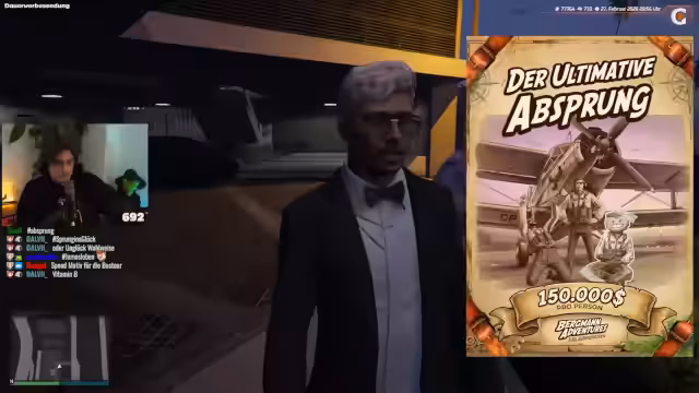 01:13:28Im Club kommt es zu einem wiederholten Missverständnis, bei dem der Streamer fälschlicherweise für einen anderen Bergmann gehalten wird, was zu einigen humorvollen und irritierenden Gesprächen führt. Parallel dazu beginnt ein Geschäftstreffen mit einem potenziellen Kunden, das die Zusammenarbeit bei Werbeflyern und Marketingmaterialien für zukünftige Abenteuer-Events wie den 'Ultimativen Absprung' zum Thema hat.