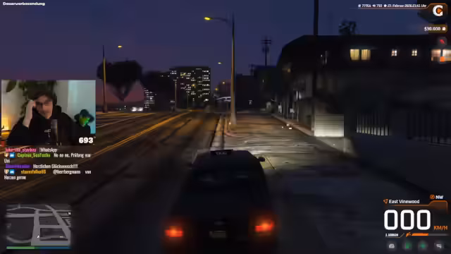 02:34:28Ein Wendepunkt ist die Annahme eines Taxi-Auftrags, um eine Fahrt zum "Rockford Plaza" durchzuführen. Der Streamer sucht nach dem Treffpunkt, was zu einigen technischen Unstimmigkeiten und Verwirrung führt. Der Fahrgast, Melody, ist eine alte Bekannte aus dem GTA RP, und sie unterhalten sich über gemeinsame Bekannte und aktuelle Entwicklungen auf dem Server, was ein Wiedersehen mit alten Freunden andeutet.