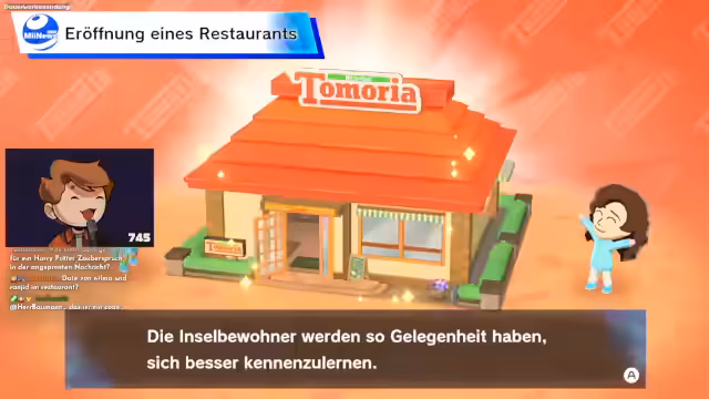01:42:53Immer wieder werden Mi-Nachrichten präsentiert, die kurze Geschichten und Erlebnisse der Inselbewohner erzählen. Dies beinhaltet Situationskomik und zwischenmenschliche Dynamik, wie Ranjits Versuch, einem anderen Insulaner einen Aufkleber auf den Rücken zu kleben. Diese Nachrichten fördern das Gefühl von Gemeinschaft und bringen Leben in die Spielwelt.