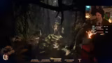 02:25:40Die Erkundung eines Tempels führt zu einem Rätsel mit vier Statuen, die alle nach vorne zeigen müssen, um eine Tür zu öffnen. Unmittelbar danach kommt es zu einem Kampf gegen eine riesige Schlange, bei dem der Spieler anfangs Schwierigkeiten mit Ausweichen und Blocken hat. Nachdem die Schlange besiegt ist, findet der Spieler eine Karte und eine Arzttasche, die für die Weiterreise wichtig sind. Einige technische Probleme unterbrechen den Gameplay-Moment kurzzeitig.