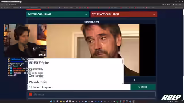 00:41:33Der Streamer spielt das Spiel 'Framed', bei dem es darum geht, Filme anhand von kurzen Ausschnitten zu erraten. Er hat Schwierigkeiten mit einigen Filmen, darunter einen VHS-Horrorfilm und später einen Film mit Laura Dern aus Jurassic Park. Er unterhält sich auch über die Schauspielerin Angelica Houston aus der Addams Family-Filmreihe und teilt eine interessante Anekdote über Raoul Julia, der eine Rolle in Street Fighter angenommen hat, bevor er starb.