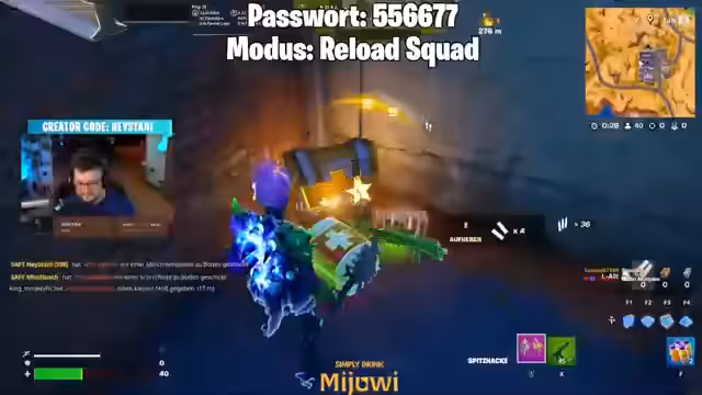 Fortnite-Gameplay und Chat-Interaktion