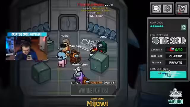 04:59:58Der Streamer ist bereit für den Among Us Stream und erwartet ein Chaos. Es werden spezielle Rollen wie Camouflage und Morphin-Rolle erklärt, die das Spiel beeinflussen. Ein technisches Problem beim Joinen des Spiels führt zu einer kurzen Verzögerung, da ein Streamer seinen PC nicht rechtzeitig fertiggestellt hat. Der Start verzögert sich, da der Host den Server neu erstellen muss, aber letztendlich beginnt das Spiel.