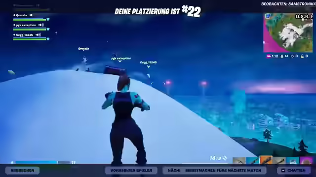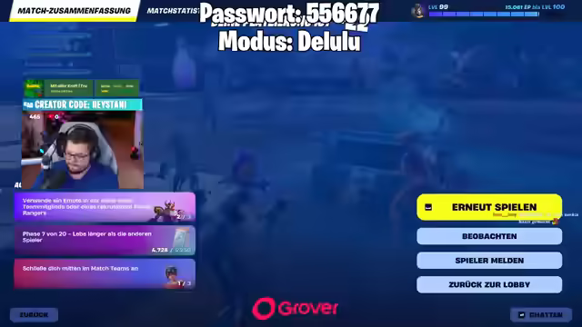 01:37:08Der Streamer lobt den neuen Modus in Fortnite und betont, wie viel Spaß die Leute damit haben. Er kündigt ein größeres Update Anfang Oktober an, das sich um Fiesten drehen wird und über die gesamte Simpsen-Zeit andauern wird. Es wird eine Menge Party geben. Er bestätigt, dass Creator den Modus bereits am 18.9. testen konnten. Er begrüßt Zuschauer und freut sich über deren Anwesenheit. Es wird über das Passwort für das Spiel gesprochen und der Streamer scherzt mit den Zuschauern. Er äußert sich darüber, wie schön das Wetter draußen ist, während er im Keller sitzt und Fortnite spielt. Er erklärt, dass er die Firmware vom Mischpult downgraden muss, dies aber nicht onstream machen kann.