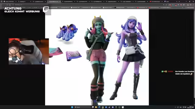 01:52:19Der Streamer kündigt an, dass das große Fortnite-Update bald erscheinen wird, wahrscheinlich zwischen 11 und 16 Uhr. Alle Zuschauer werden aufgerufen, vor dem Start der Server-Wartung den Creator-Code 'HeyStunny' im Itemshop einzulösen, um den Streamer zu unterstützen. Die neue Server-Wartung wird angekündigt und mögliche Inhalte wie neue Skins, darunter Splatoon-ähnliche Outfits und ein Begleiter namens Remus, werden besprochen. Auch eine The-Office-Kooperation ist Teil des Updates.