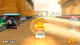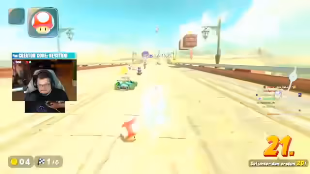 07:14:15Der Streamer erlebt eine emotionale Achterbahnfahrt im Mario Kart Rennen. Ausgangs auf Platz 5 wird er von einem blauen Panzer getroffen und stürzt in den Schlamm, was ihn auf Platz 20 zurückfallen lässt. Trotz dieser herben Niederlage zeigt er beeindruckende Moral und verkündet das Motto 'Gib niemals auf'. Er hat das Gefühl, die Rennsituation sei unfair und sogar 'ehrenlos', da ein Treffer in der Luft das Rennen sofort beendet. Trotzdem findet er später den Weg zurück auf Platz 9.