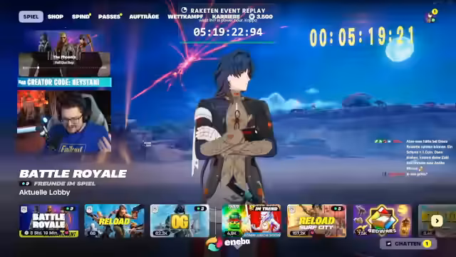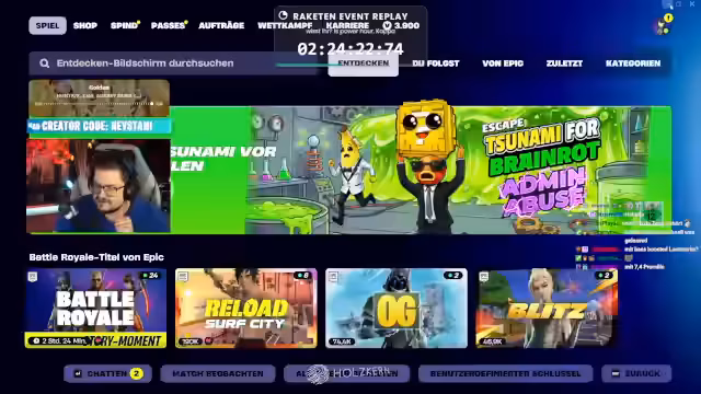 00:08:11Der Streamer spekuliert über das anstehende Live-Event von Fortnite. Er hat den Eindruck, dass Epic Games das Event diesmal offizieller ankündigt als beim letzten Mal, was sich durch einen Lobby-Background, einen Timer, eine Ankündigung und ein kostenloses Ladebildschirm zeigt. Er vermutet, dass das Spiel das Event das letzte Mal versehentlich vergessen hat zu verschieben und es jetzt nachholt.