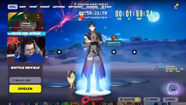 00:07:56Aufgrund des bevorstehenden Live-Events von Fortnite wird der ursprünglich geplante Resident Evil Challenge Stream auf morgen verschoben. Der Fokus liegt heute auf dem Marathon und dem Fortnite-Event. Für morgen sind ein Battlefield Cup und eine entspannte Resident Evil-Session angesetzt, bei der der Streamer alle Teile des Spiels mehrmals durchspielen will, um die Platin-Trophäen zu erhalten.