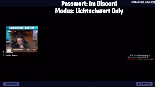 02:25:05Es wird speziell auf eine geplante Runde mit nur Lichtschwertern hingewiesen, wobei die Spieler aufgefordert werden, diese auf der Karte zu suchen und ausschließlich Nahkampfwaffen zu verwenden. Trotz der Regeln werden einige Spieler weiterhin Fahrzeuge einsetzen, was den Streamer verärgert.