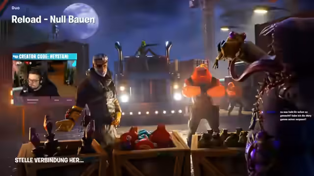03:15:31Der Streamer wechselt das Spiel zu Fortnite und holt sich den Streamer Hasi dazu. Beide äußern sich auf humorvolle Weise auf ihre Tastaturen, da sie im Spiel nicht optimal agieren können. Es wird geplant, gemeinsam eine Runde ohne Bauen zu spielen, um sich auf die Twitch Rivals vorzubereiten. Dabei wird auch über gemeinsame Inhalte zukünftiger Streams gesprochen.