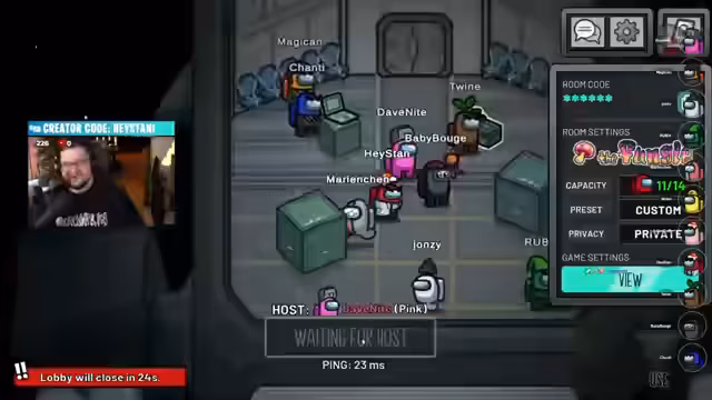 02:08:54Im Stream wird eine Runde Among Us mit zwei Impostoren gespielt. Der Streamer verlässt kurz den Raum, kehrt aber zurück. Im Spiel gibt es erste Verdächtigungen, insbesondere als der Reaktor sabotiert wird und jemand in der Nähe gesehen wird. Dave Knight wird verdächtigt, nachdem Leslie einen Kill beobachtet haben will, was jedoch von anderen bestritten wird. Es kommt zu intensiven Diskussionen über die Alibis und die plötzliche Bewegung der Spieler.