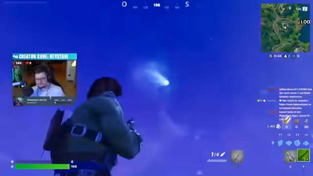 05:29:37Im Mittelpunkt des Streamings steht das aktuelle Meteoriten-Mini-Event in Fortnite OG. Der Streamer erkundet die veränderte Map, bei der Meteoriten zwar einschlagen, aber keinen Schaden verursachen, stattdessen aber einen Low-Gravity-Effekt erzeugen. Er vergleicht das Event mit der Aktion zu Halloween, bei der ebenfalls Sticker gesammelt werden konnten, und betont, dass dies eine Erinnerung an die Events von 2018 ist.