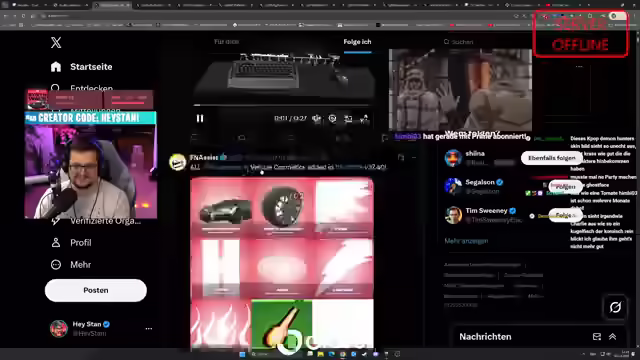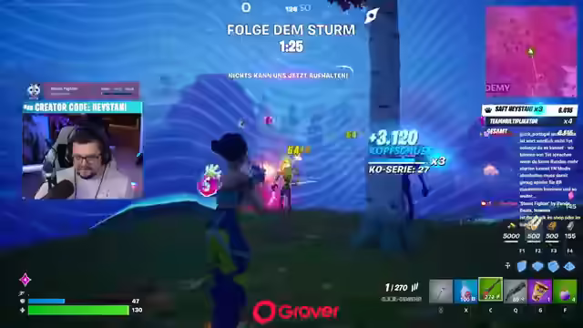 00:00:32Der Stream beginnt mit aggressivem Gameplay in einem nicht genannten Spiel, wo der Streamer mehrere Gegner überfährt und spektakuläre Sniper-Hits landet. Später im Stream wird die Preiserhöhung des Game Pass diskutiert. Es wird spekuliert, ob eine kürzliche Empfehlung für den Game Pass vor oder nach der Preiserhöhung ausgesprochen wurde. Die allgemeine Teuerung im Leben wird angesprochen, einschließlich möglicher zukünftiger Preiserhöhungen in Fortnite, was die Reaktion der jüngeren Spieler betrifft. Die Community wird begrüßt und es werden Animationen für die Lichter gefordert. Der Streamer spricht über Studenten und sucht Studenten für eine Aktion. Es wird erwähnt, dass private Nachrichten überflutet sind und bittet darum, sich außerhalb von Aktionen zu melden. Der Streamer braucht Studenten für eine Aktion, bei der Level 20 erreicht werden muss, um den Rank-Modus freizuschalten. Die Kampagnenmanager werden kritisiert, da sie von Streamern zu bestimmten Zeiten Placement-technisch etwas machen, aber nicht von Studenten, die ein Leben haben, erwarten können, zu einer bestimmten Zeit online zu sein.