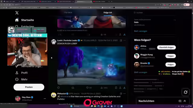 04:00:48Das neue K-Pop Demon Hunters Update in Fortnite wird vorgestellt, das sich wie eine halbe neue Season anfühlt. Die Käfer-Season ist vorbei, und es gibt neue Items, eine neue Map und einen neuen Launcher-Screen. Es wird dazu aufgerufen, den Creator-Code "Hey Stani" im Shop einzutragen und Screenshots von Käufen auf Instagram, Twitter oder Discord zu teilen, um eine Gegenleistung zu erhalten. Das K-Pop Demon Hunters Bundle kostet 3500 V-Bucks, wobei einzelne Skins teurer sind. Der Fortnite OG Pass hat Season 6 erhalten, mit neuen Skins wie Omenjägerin Calamity und DJ Yonda 3000. Die fliegende Insel und Leaky Lake sind zurück, und die Insel wird sich wieder bewegen. Die Schattenwürfel sind rot statt lila, und es gibt einen Speed-Effekt statt Low-Gravity.