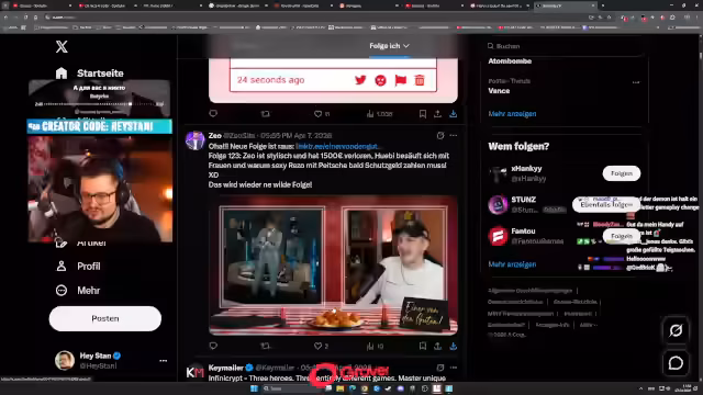 04:31:51Aktuelle Entwicklungen im Creator-Bereich werden besprochen, wie die Trennung eines Creator-Pärchens und die damit verbundenen Gerüchte. Dies mündet in eine Diskussion über Treue und Pornokonsum in Beziehungen. Die Auffassung ist, dass Pornografie an sich kein Fremdgehen ist, aber individuelle Grenzen zwischen Partnern besprochen werden müssen. Offenes Teilen von Leidenschaften wird als Schlüssel für eine gesunde Beziehung angesehen.