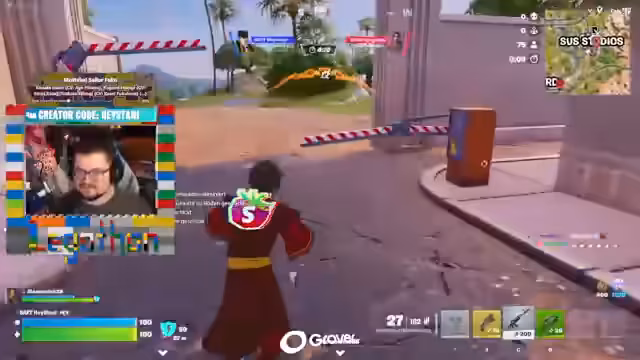03:12:38Der Streamer zeigt Momo, wie man die FPS-Anzeige in den Optionen aktivieren kann und wie man die Lautstärke anpassen kann. Sie spielen weiter Fortnite und sammeln Gegenstände. Der Streamer erwähnt, dass Fortnite im September 9 Jahre alt wird und eine lange Geschichte hat. Er vergleicht das Spiel mit anderen Battle-Royale-Spielen wie PUBG und H1Z1. Er zeigt auch, wie man in Fortnite springen und bauen kann, um schneller zu bewegen oder sich vor Angriffen zu schützen.