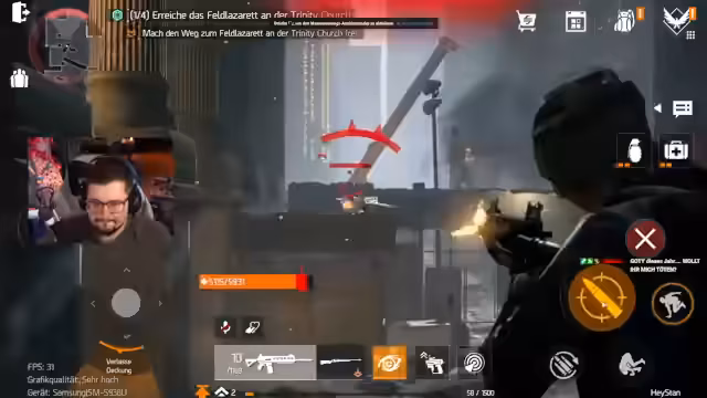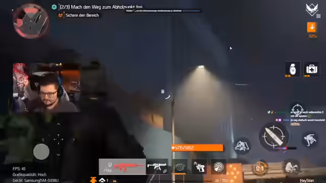04:48:57Stan wechselt zu The Division 2 und erwähnt das neu erschienene Mobile-Spiel Resurgence. Er zeigt das Mobile-Game auf einem Emulator und diskutiert die Grafik-Einstellungen und die Performance des Spiels. Obwohl er mit 30 FPS und reduzierter Grafik auf dem Emulator spielen muss, ist er beeindruckt von den Verbesserungen mobil optimierter Spiele. Stan erwähnt auch seine Fortschritte in The Division 2 und zeigt einiges des Spiels, während er mit Chat interagiert und über seine Erfahrungen in dem Spiel spricht.