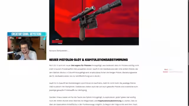 01:52:47Kurz vor dem geplanten Server-Update für ein neues Fortnite-Update ruft der Streamer alle Zuschauer auf, ihren Creator Code zu erneuern. Mit dem Code 'HeyStunny' können Spieler dem Streamer unterstützen, wenn sie V-Bucks, die Fortnite Crew oder andere im Shop angebotene Inhalte erwerben. Der Streamer betont, dass jeder Kauf, unabhängig von der Höhe, mit einer 5%-Beteiligung hilft, und gibt an, dass es noch einige gebe, die den Code noch nicht aktiviert haben.