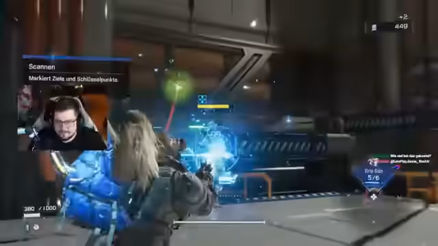06:20:17Der Streamer trifft auf erste größere Kämpfe gegen mehrere Gegner, darunter Bots und Drohnen. Er erklärt das Hacking-System und wie es zur Schwächung von Gegnern eingesetzt werden kann. Die Gegner spawnen nach Aktivierung erneut, ähnlich wie in Souls-Spielen. Der Schwierigkeitsgrad wird als hoch bezeichnet, besonders auf höchster Stufe.