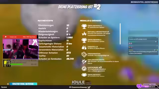 03:47:12Der Streamer beginnt mit einer Runde Fortnite und sucht verzweifelt nach einem fehlenden Buch für eine Quest, welches jedoch nicht im Inventar erscheint. Stattdessen konzentriert er sich auf die Zerstörung von Nests in der Kristallhöhle, wobei er mit seiner Ausrüstung und den Karten seiner Mitspieler taktisch vorgeht, um die Mission erfolgreich abzuschließen. Die Suche nach dem Buch bleibt jedoch ungelöst und wird als lästiges Missverständnis im Spielstil wahrgenommen.