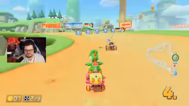 03:33:13Die ersten Rennen in der Lobby sind chaotisch. Unbeabsichtigt wird mit 200cc statt 150cc gefahren, was für Unverständnis sorgt. Die Rennen selbst sind geprägt von vielen Kollisionen und Item-Würfen, und die Teilnehmer müssen sich erst an die Steuerung und die Geschwindigkeit gewöhnen, was zu einem unübersichtlichen und lustigen Verlauf führt.