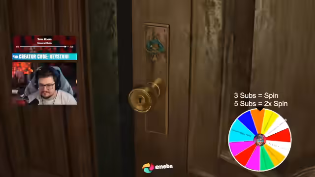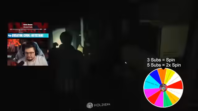 01:57:15Der Streamer erläutert das Grundprinzip des Glücksrads genauer. Es besteht nicht nur aus Bestrafungen, sondern enthält auch wenige Vorteile, wie zum Beispiel die unendliche Munition, um den Streamer nicht in eine komplette hoffnungslose Situation zu bringen. Die Idee dahinter ist ein Gleichgewicht zwischen leidvollen Herausforderungen, die vom Publikum verlangt werden, und einer durchspielbaren Kampagne. So wird verhindert, dass der Streamer mit einem Messer oder ohne jegliche Munition durch das gesamte Spiel muss.