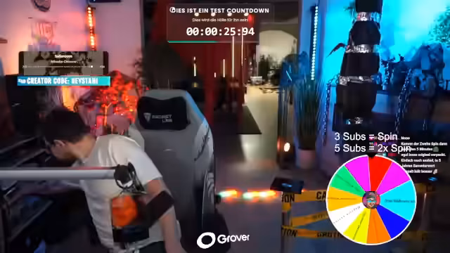 00:09:46Das zentrale Element der Challenge ist das Glücksrad, auf dem verschiedene Bestrafungen landen können. Zu den ersten gezogenen Bestrafungen gehören 'Invertierte Steuerung', bei der die Steuerungsachsen vertauscht sind, und die 'beste Waffe wegzulegen'. Diese beiden Bestrafungen werden als besonders fies und nervig für den Streamer eingestuft, was zu anfänglichen Schwierigkeiten und Frustration führt. Der Streamer muss sich ständig an die veränderten Steuerung gewöhnen und ohne seine stärkste Waffe zurechtkommen.