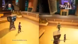 01:39:37Das Duo erkundet eine bunte, interaktive Dschungelwelt und entdeckt zahlreiche kleine Rätsel und Geheimnisse. Es gibt eine Wippe, die zum Schleudern eines Charakters genutzt werden kann, und mehrere Verwandlungspunkte. Spieler verwandeln sich in Fees und Otter, was Interaktionen mit der Umwelt ermöglicht. Auch das Konzept von Blütenstaub als Transportmittel wird eingeführt. Eine erste gefundene Interaktion ist ein 'Ouschen', das als willkommene Heimkehr gefeiert wird.