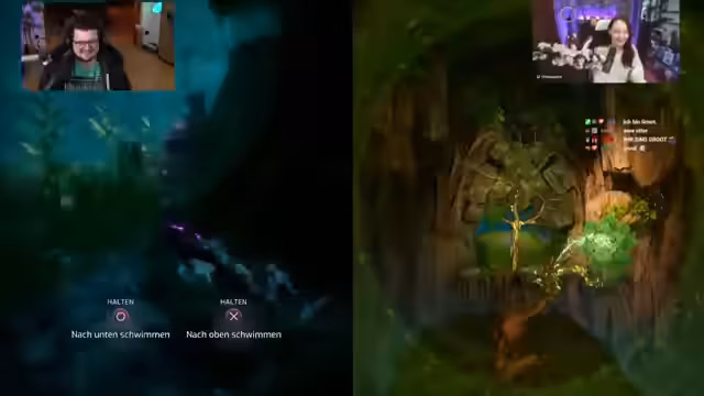 05:32:09Das Spiel nimmt eine düstere Wendung mit Dead Space-Elementen. Die Spielerinnen müssen zusammenarbeiten, um dunkle und gefährliche Bereiche zu überwinden. Es gibt intensive Kämpfe mit riesigen Gegnern, die an Megaman erinnern. Teamwork ist entscheidend, um Bomben zu platzieren und Mechanismen zu aktivieren. Die Spielerinnen opfern sich füreinander und nutzen Portale, um voranzukommen. Es folgen Parkour-Einlagen und Bosskämpfe mit mehreren Phasen. Die Spielerinnen diskutieren über die Schwierigkeit des Spiels und die vielen Ideen, die darin stecken. Es gibt Referenzen an Battle Angel Alita und die Hoffnung auf eine Nintendo Switch-Ankündigung. Das Spiel wechselt plötzlich in eine gezeichnete Waldlandschaft, in der die Spielerinnen einen entführten Prinzen retten müssen. Sie nutzen Nunchucks und Bögen, um Feinde zu besiegen. Es gibt humorvolle Rätsel und Anspielungen auf andere Spiele wie Hollow Knight. Die Spielerinnen erreichen den tiefsten Punkt der Höhle und kämpfen gegen eine riesige, feindliche Ente. Am Ende retten sie den Prinzen und kehren in ein 3D-Dorf zurück. Es werden emotionale Themen angesprochen, wie der bevorstehende Tod eines Vaters und der Wunsch, der Realität zu entfliehen. Die Spielerinnen drücken ihre Bewunderung für die Figur Zoe aus und setzen ihr Abenteuer fort.