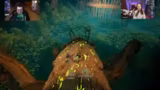 01:42:55Die Erkundung wird durch aggressive Kreaturen erschwert, insbesondere Piranias und Spinnen, die ständig verfolgen. Das Duo muss über Hindernisse klettern, auf Wippen balancieren und mit dem Blütenstaub gezielt fliegen, um den Feinden zu entkommen. Ein besonders knappes Misslingens ereignet sich, als eine Spinne den Spieler fast erwischt. Die Steuerung der Verwandlung wird getestet und als nützlich für das Klettern identifiziert.