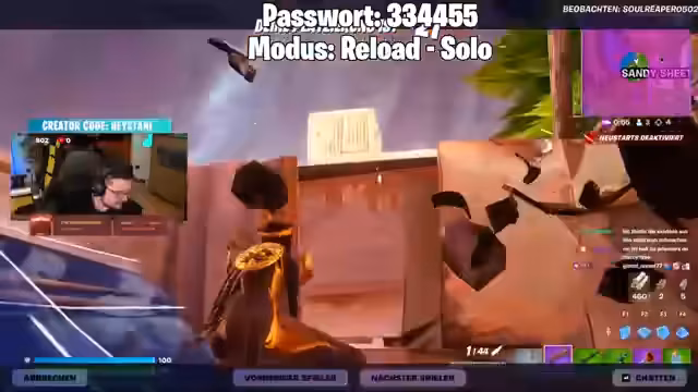 Fortnite-Spielrunde und Abschweifen zu Games und Streams
