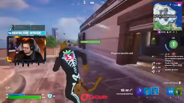 03:37:36Das Team startet in die zweite Runde mit den vorgegebenen Waffen. Es kommt zu intensiven Nahkampfgefechten, bei denen viele Bonuspunkte durch Pfannen- und Messerkills erzielt werden. Der Streamer bemerkt die Herausforderung, aber auch die hohe Punkteausbeute. Das Team nutzt strategisch die Halloween-Companion-Fähigkeiten und sammelt zusätzliche Punkte durch Fahrzeugkills. Trotz technischer Probleme mit dem Akku bleibt das Team fokussiert.