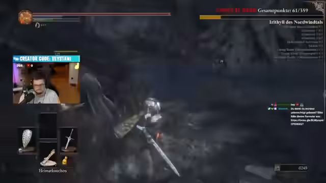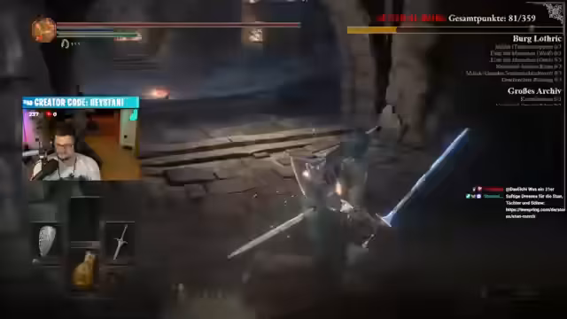 04:51:42Ein zentraler Punkt ist der Aufbau der Ausrüstung. Der Streamer entscheidet sich zunächst für das krude Breitschwert, bevor er später auf ein Claymore wechselt, um von dessen besseren Flinch-Eigenschaften zu profitieren. Er sammelt zudem Zauber und Items, um seineXP zu steigern und sucht nach Schweren Edelsteinen, um seine Waffen zu verbessern und den Damage Output zu erhöhen. Die Vorbereitung ist entscheidend für den Erfolg des Laufs.