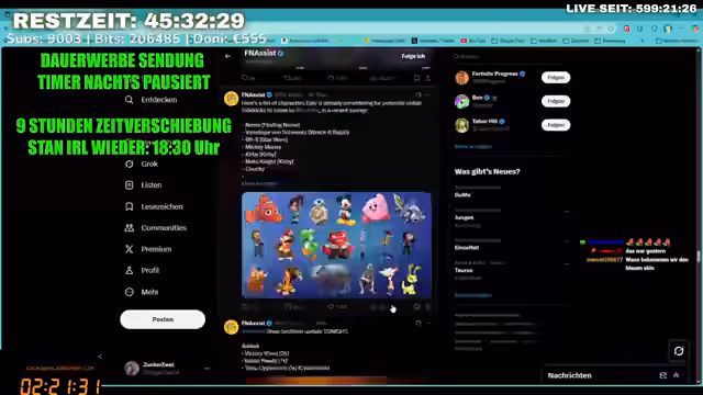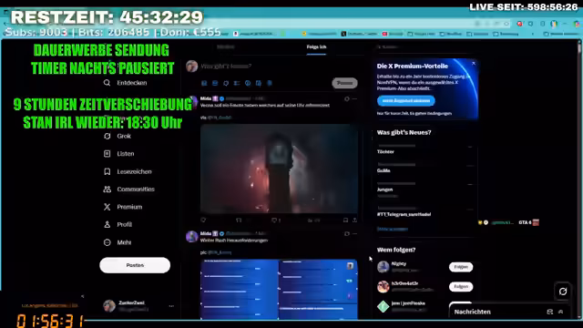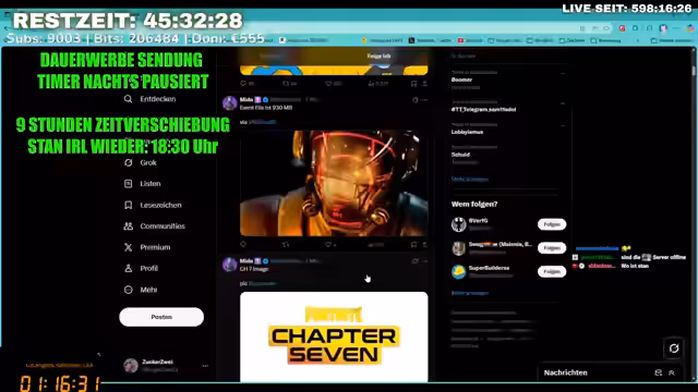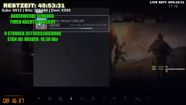 19:20:28Es gab einen Stream-Ausfall von etwa zehn Minuten, was als unnötig empfunden wird, besonders mitten in der Nacht. Der Streamer bedauert den Verlust von Zuschauern aufgrund des Ausfalls. Vor dem Ausfall waren es etwa 320-330 Zuschauer, danach fielen die Zahlen auf 260. Dies ist ärgerlich für die Statistik, da die Zuschauerzahlen nachts ohnehin tendenziell sinken. Er bemerkt, dass es ein Wunder ist, dass solche Ausfälle selten passieren. Es wird überlegt, einen Sonder-Restart mit den Mods zu machen, um den 48-Stunden-Zyklus des Streams anzupassen und einen Neustart um 4 Uhr nachts zu vermeiden.