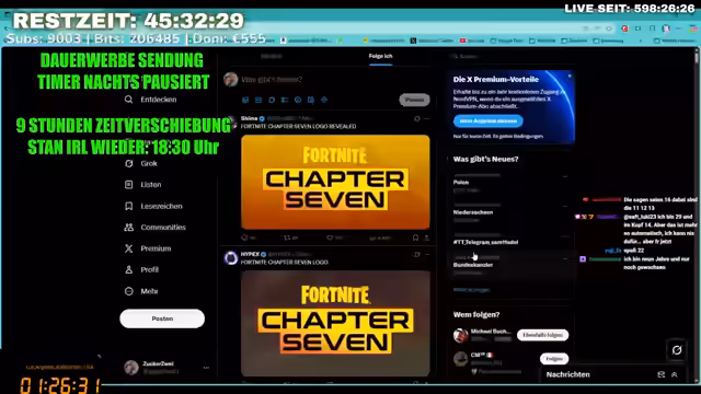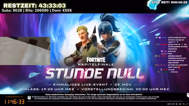 16:27:01Es wird deutlich, dass ein großes Stream-Event bevorsteht, das mit der Community gefeiert wird. Der Streamer ist gerade dabei, Content zu erstellen und lädt überall Shorts hoch, mit Ausnahme von TikTok. Der neue Lobby-Hintergrund, der im Trailer zu sehen ist, wird ebenfalls thematisiert. Es wird erwähnt, dass der Jetlag gut überstanden wurde und der Teaser-Trailer für Chapter 7 große Begeisterung auslöst. Es gibt Hinweise auf eine Chapter 7 Map, die bereits im Stream gezeigt wurde. Die Diskussion dreht sich auch um die Notwendigkeit, ein Video aufzunehmen, um die neuen Informationen zu verarbeiten. Dabei wird über die Nutzung von TeamViewer und die Einbindung des Videos in die Facecam gesprochen, um trotz der Reisebedingungen professionellen Content zu liefern. Es wird betont, dass es Zeit für neuen Content ist und die Zuschauer aufgefordert werden, alle verfügbaren Informationen zur neuen Season und dem Live-Event zu sammeln.