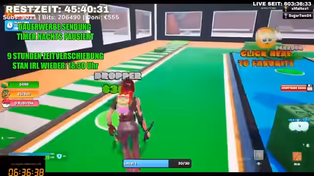 11:36:44Es wurde diskutiert, ob Mod-Timeouts als Kanalpunkt-Belohnung erstellt werden könnten, was nur Stan selbst tun könne. Der Streamer bemerkte, dass es ohne Stan im Stream sehr ruhig sei. Er erwähnte, dass er noch eine wöchentliche Aufgabe erledigen müsse: Freiwaffen in 'Donutsturm' aufsammeln und Distanz unter dem Einfluss von Tomaten zurücklegen. Es wurde über eine 'krasse Map' gesprochen, die lila überlaufen sei und möglicherweise radioaktiv verseucht durch ein Atomkraftwerk. Der Streamer landete bei 'Glitus Korn' und arbeitete drei Aufträge ab, während er sich im Kreis drehte. Er entdeckte eine 'Money Machine' und ein 'Spin Wheel' zum Glücksspiel. Es wurde gefragt, ob die EP zählten und wie viel Geld er habe. Er stellte fest, dass er ein Levelaufstieg bekommen hatte und bereits 12.200 EP gesammelt hatte. Der Streamer überlegte, sich selbst zu töten, um das Spiel zu beenden. Es wurde über ein Live-Event in zehn Tagen um 20 Uhr gesprochen und die nächste Folge einer Serie um 18 Uhr. Er fand heraus, dass es Waffen gab und das Spiel eigentlich gegeneinander gespielt werden sollte.