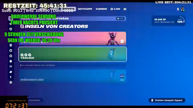 09:22:11Der Streamer war anscheinend schon einmal bei Disney angemeldet und hat einen Disney-Account. Er verknüpft seine Konten für Disney und Epic Games und erhält den Gratis-Gleiter. Es wird betont, dass man keinen Disney Plus Account benötigt, um einen Disney Account zu erstellen und den Gratis-Gleiter zu erhalten. Es wird scherzhaft gefragt, wer noch nicht geduscht hat. Der Streamer erklärt, dass er den ganzen Tag unterwegs war und sich extra für den Stream geduscht und zurechtgemacht hat, obwohl er nicht zu sehen ist. Es wird über den 'natürlichen Look einer Frau' gesprochen und dass der Mann einen auch lieben sollte, wenn man so aussieht. Es wird eine Werbepause eingelegt. Es wird gefragt, ob alle den Gleiter und einen Disney-Account erstellt haben. Die Größe des Updates variiert je nach Plattform. Es gibt Aufgaben bei Bricks, wo man das Simpsons Haus freischalten und Fortnite Lego bauen kann. Das Update ist bereits fertig. Es wird erwähnt, dass der Xbox Game Pass Ultimate ab dem 1. Oktober 2025 26,99 Euro pro Monat kostet und Zugang zu über 400 Spielen bietet. Es wird gefragt, warum die Server immer noch nicht gehen, und der Streamer gibt erneut die Anweisung, den Epic Launcher neu zu starten. Der Preis für Fortnite Crew wird diskutiert. Der Streamer bleibt im Chat und macht Mod-Arbeit. Es wird gefragt, ob man auf einem Kanal entbannt werden kann, wenn der Antrag abgelehnt wurde, und es wird geraten, die Mods anzuschreiben.