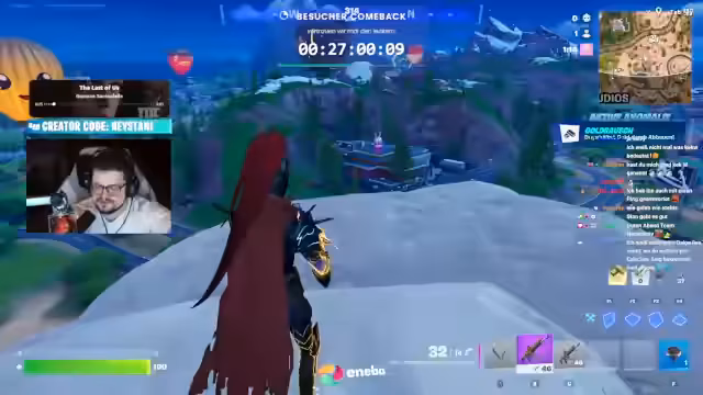 01:05:58Nach dem Event sieht der Streamer eine stärkere Nostalgie bei den Zuschauern als beim Eiskönig-Event. Er analysiert die Storyentwicklung, die Rückkehr der Sieben und den neuen Besucher aus einer anderen Realität. Er kritisiert die Fortnite-Community, da er deren Forderung nach einer Story mit den Sieben für eine gewisse Mitschuld am jetzigen Zustand hält. Zum Abschluss gibt er einen Ausblick auf zukünftige Inhalte wie Sabaton und Just Dance und nutzt die hohe Zuschauerzahl zur Erinnerung an seinen Creator Code.