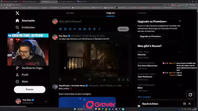 00:06:29Der Stream beginnt mit einer Begrüßung der Zuschauer und einer Zusammenfassung des Programms. Es werden die beiden Hauptthemen vorgestellt: die zeitgleich stattfindende Nintendo Direct und die Rückkehr der Tony-Stark-Insel in Fortnite. Der Streamer erwähnt technische Probleme mit seinem Monitor, der seit Jahren im Dauereinsatz ist und Pixelfehler aufweist, was ein baldiges Upgrade wahrscheinlich macht.