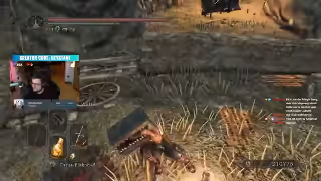 05:14:42Es wird gefragt, ob Super Bellas ihren Drop fertig hat. Es wird der Wunsch nach einer Frieren-Kooperation geäußert, bei der es ein Mimic als Item geben könnte. Es wird kommentiert, dass ein Gegner von hinten angegriffen hat, obwohl er frontal stand. Es wird die hohe Schadenswirkung der Gegner bemängelt. Es wird erwähnt, dass die Kategorie bald gewechselt werden kann. Es wird sich über Timeouts beschwert und der Chat wird gebeten, keine Konrigel zu senden. Es wird kommentiert, dass Nolex eine Dönerbox mit Curry-Ketchup ist. Es wird gefragt, ob jemand schon mal einen Döner mit Barbecue-Soße probiert hat. Es wird erwähnt, dass noch circa 13 Medaillen fehlen und dass man sich nicht traut nachzuschauen, wie viele es wirklich sind. Es wird kommentiert, dass es immer noch besser ist als auf Unreal zu grinden. Es wird erwähnt, dass ein Zweitkanal für solche stumpfen Grinds existiert. Es wird sich darüber frustriert, dass man den Leuten nicht zeigen kann, wie man Dark Souls 2 richtig spielt, weil man diesen Grind durchziehen muss.
