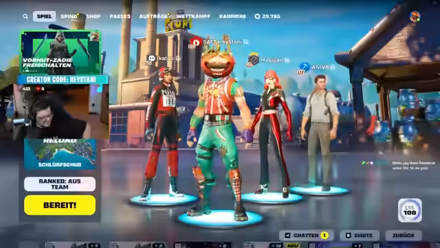 00:02:30Der Fokus des Streams liegt auf dem Spielen von Fortnite, insbesondere auf dem Abruf von 'Fix'-Aufnahmen. Der Streamer erwähnt, dass er oft den zweiten Platz in solchen Aufnahmen belegt und beschreibt das Gameplay auf der neuen 'Reload'-Karte. Neben dem Spielen gibt es auch Gespräche mit der Community, in denen Nostalgie für vergangene Streams und Entwicklungen im Gaming-Lebes geteilt werden. Themen wie die afrikanischen Server, die Verbesserung des Spiels und die persönlichen Erfahrungen mit Fortnite werden diskutiert.