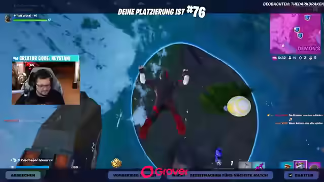 06:55:40Es wird festgestellt, dass die Zone Schaden verursacht und Healer benötigt werden. Alvi stirbt in der Zone. Rubix verrät den Streamer. Es wird festgestellt, dass am Ende nur einer gewinnen kann. Es wird kurz über das Verlosen von Subs gesprochen. Es wird festgestellt, dass nur noch zwei Spieler übrig sind. Der Streamer stirbt und kommentiert dies mit dem Kommentar "Immer diese Türken!". Es wird kurz über Spectatoren gesprochen. Der Streamer möchte kurz alleine in der Runde spielen. Es wird diskutiert, ob es cool ist, wenn ein paar Leute, die man kennt, in der Runde sind. Der Custom-Code wird entfernt. Es wird festgestellt, dass es jetzt 80 Leute in der Runde sind. Es wird bestätigt, dass man doppelte Crater-Code-Einnahmen am Wochenende erhält, wenn man eine Stunde lang den Modus spielt. Es wird betont, dass man den Crater-Code seines Lieblings-Creators im Item-Shop eintragen soll, um diesen am Wochenende doppelt zu unterstützen.